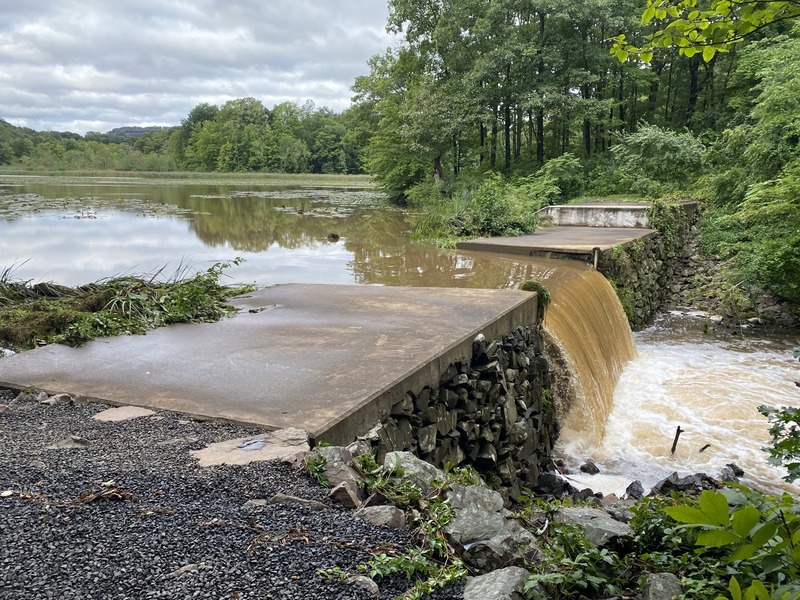 Constructed in 1875 as a local water supply, the dam created an 11-acre impoundment known as Highland Pond. Although the pond had become a prominent feature in Middlesex Land Trust’s 30-acre, wooded nature preserve, the dam was a barrier for migrating fish, such as alewife, blueback herring, and American eel.
