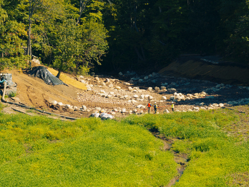 Biohabitats then crafted a design and supported permitting efforts to restore fish passage and ecological function to the riparian corridor while enhancing wetland function as possible. Relying on a mixture of engineered and passive processes, the solution integrated theories of Stage 0 restoration, added habitat complexity, stabilized a portion of the impounded sediment, and restored stream channel using a series of boulder cascades (weirs). It also took into account the local beaver population, allowing the beaver to naturally maniputlate the site and build ecological complexity through their activities. In 2025, SumCo Eco-Contracting removed the dam and constructed Biohabitats’ design, restoring several miles of upstream aquatic habitat.