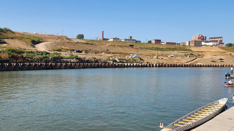 After it was cleared in the mid-20th century to accommodate river dredging and widening, Irishtown Bend’s vacant hillside became a risk for collapse into the Cuyahoga, and a multi-phase effort was launched to stabilize the hillside and transform it into a public green space. Slope stabilization involved armoring the shoreline with a bulkhead deemed essential to prevent collapse. As the stabilization team’s ecological consultant, Biohabitats improved the bulkhead design so that it maximizes ecological value and habitat within narrow design constraints.