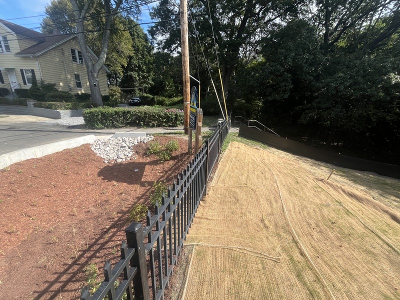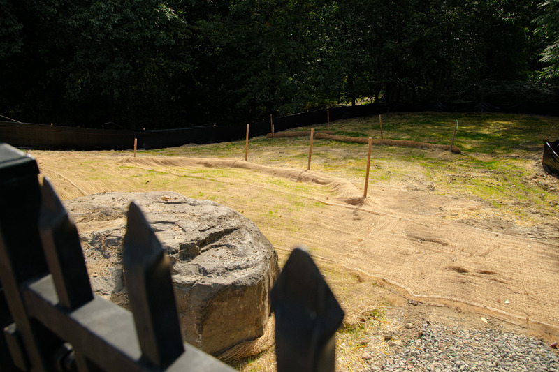 Biohabitats excavated a small bump-out to create a bioswale to capture and treat stormwater runoff that collects at the top of the slope. This small solution will make a big impact to improve water quality and reduce the amount of stormwater that flows towards Svihra Park.