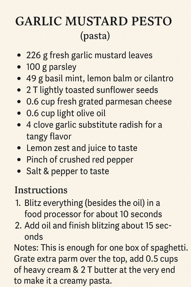 Garlic Mustard Pesto (created by Chef Wyatt Gaus of Herbally Wonderful Culinary)