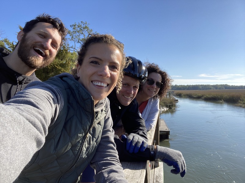 One summer night I was camping out on a floating dock with some gals. After watching the stars and stirring up the bioluminescent critters we got nestled in our sleeping bags and ready for some shut-eye, but just as we were drifting off, an exceptionally friendly local alligator—well known to nearby fishermen who used to feed him (booo)—slid into the water and started swimming toward us. We weren’t thrilled, but just before panic set in, a pod of dolphins swam down the creek and circled the dock, scaring away our scaly friend. A saltmarsh miracle.